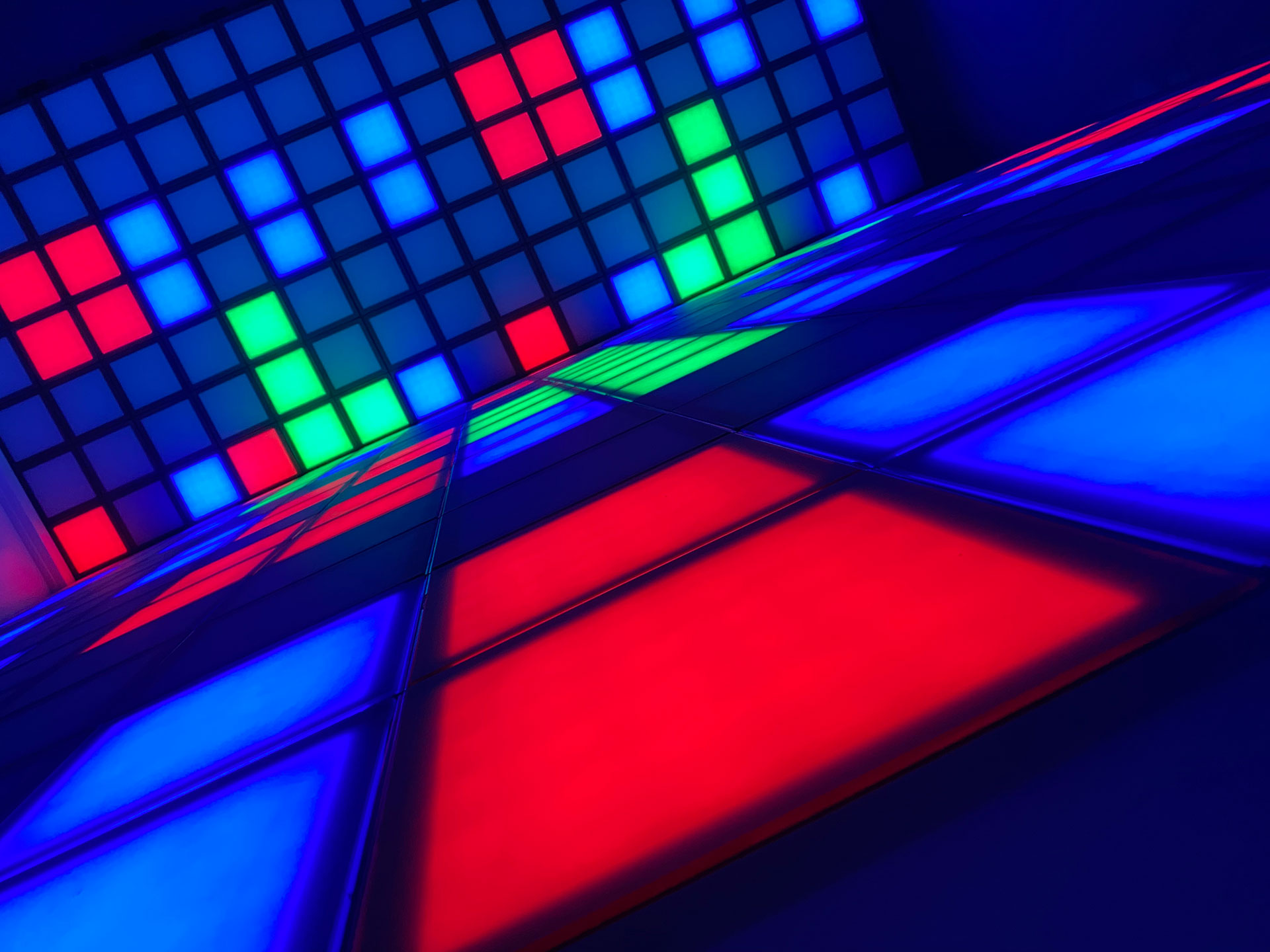 En nuestro suelo de lava, ¡tú eres el protagonista! Al entrar en una de nuestras dos salas de juego, el suelo se transforma en un espacio tecnológico lleno de luces, colores y sonidos que reaccionan a cada uno de tus movimientos.